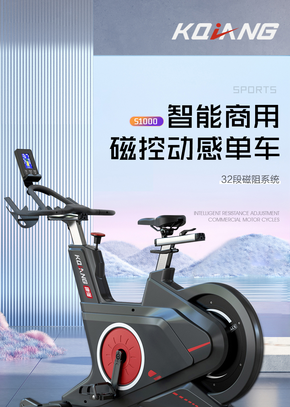 康强动感单车S1000家用商用级别健身车健身房专用健身器材