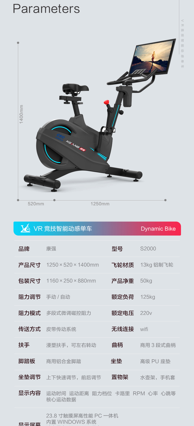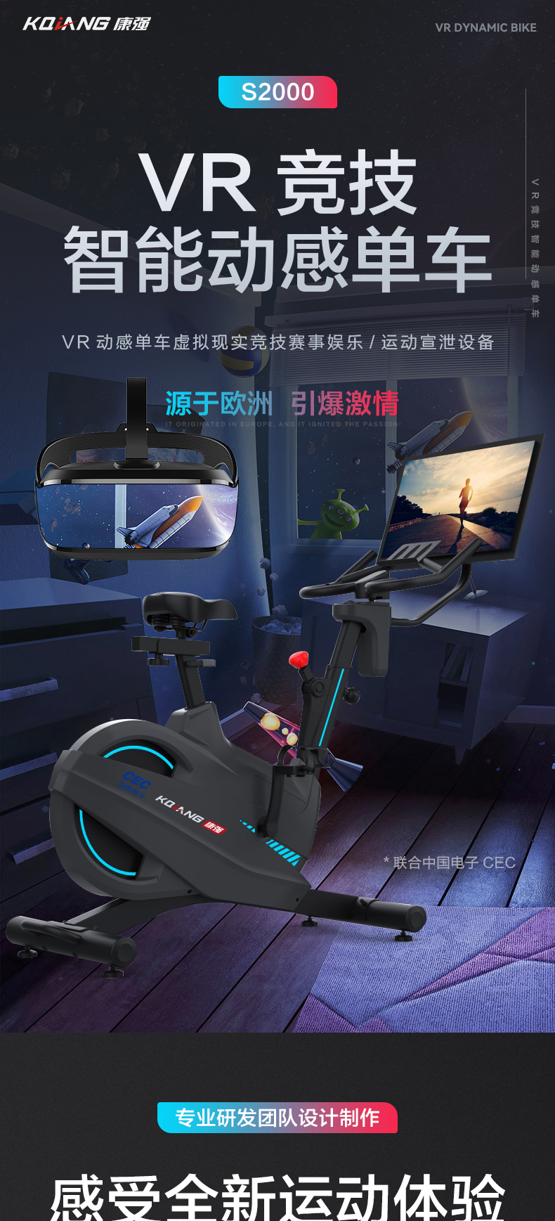 康强VR动感单车S2000虚拟现实智能健身车团队训练比赛