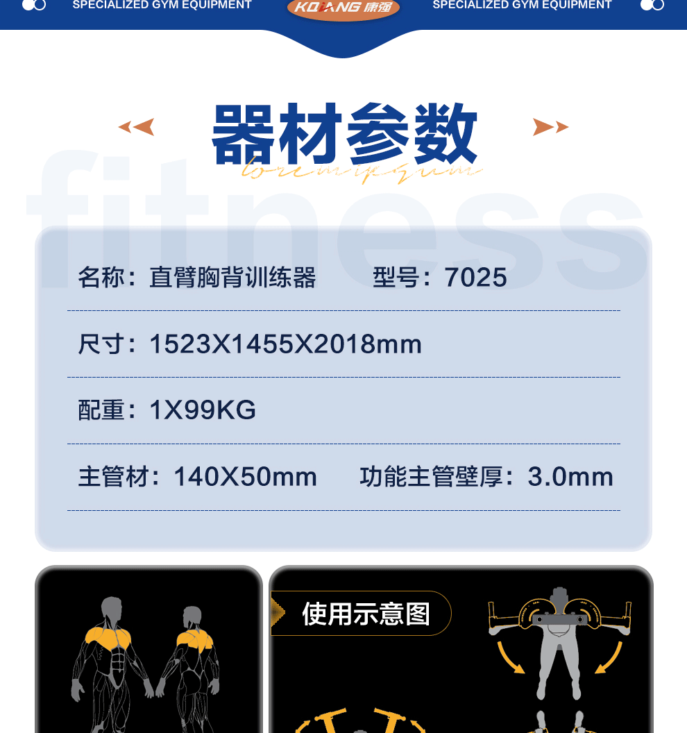 | 型号 | 直臂胸背训练器7025 | ||