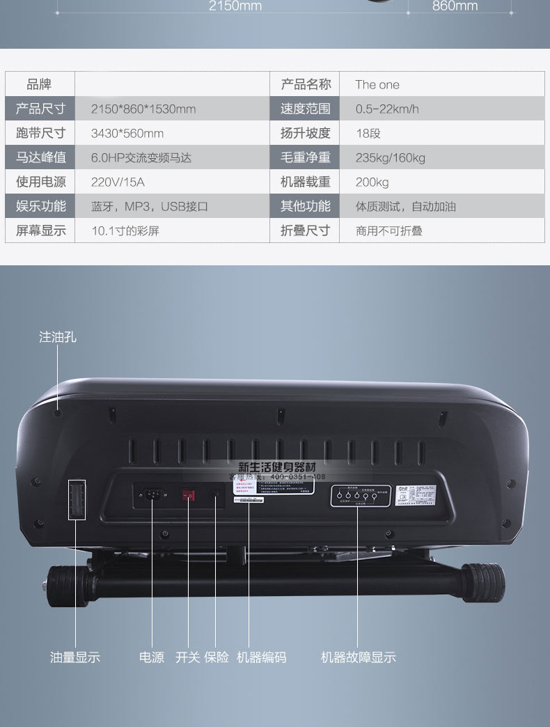 | 速度范围 | 0.5-22km/h | 跑带尺寸 | 3430*560mm |