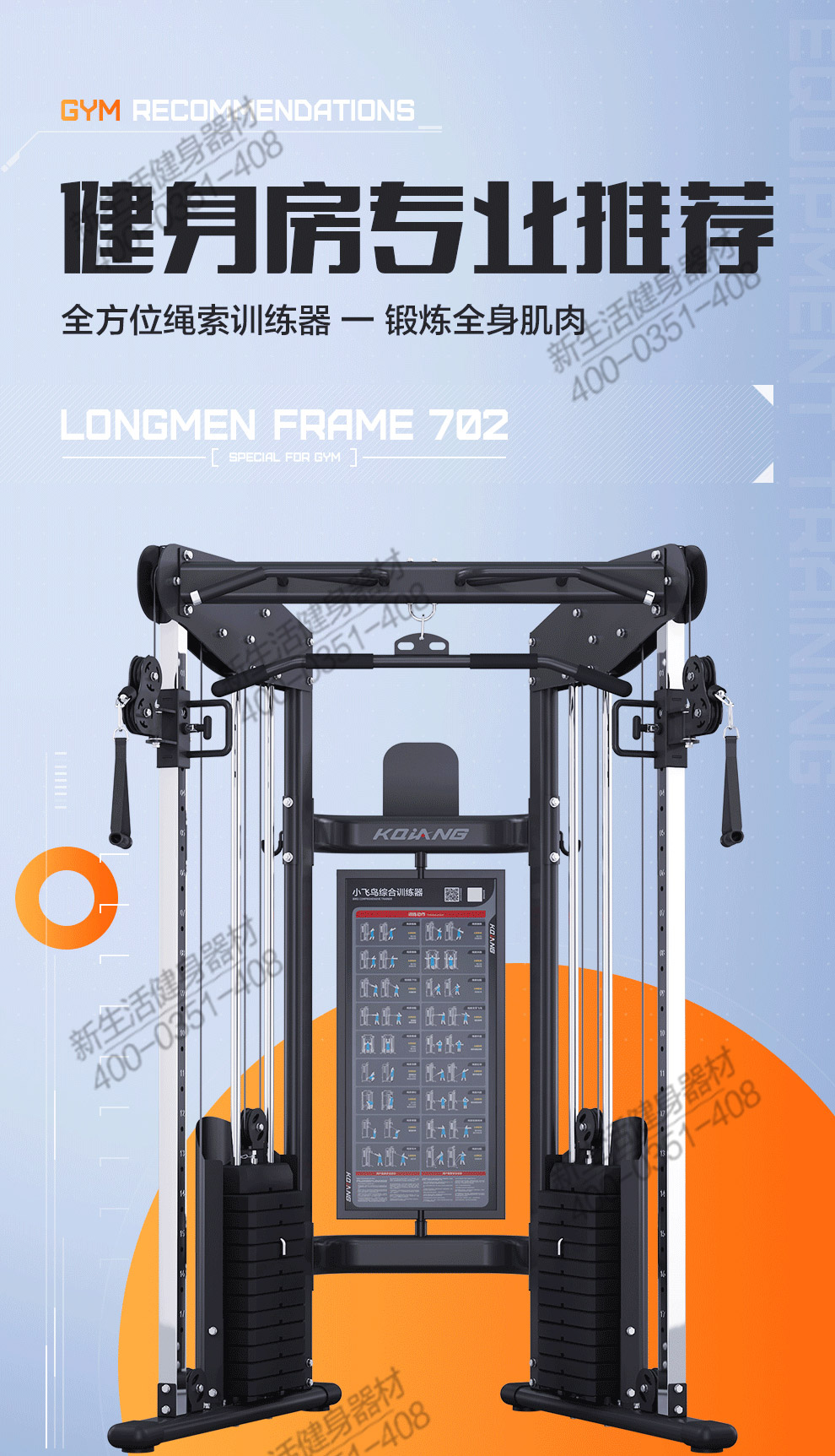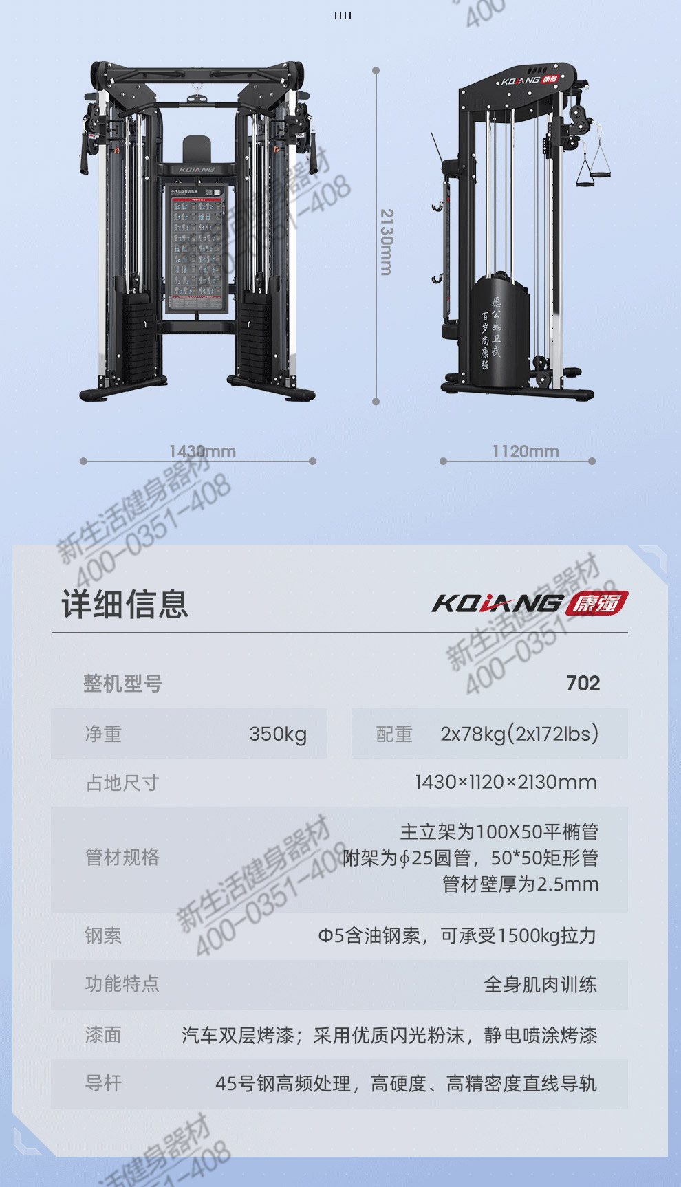 康强小飞鸟702 综合训练器械多功能力量健身房器材深蹲架家用商用小飞鸟龙门架
