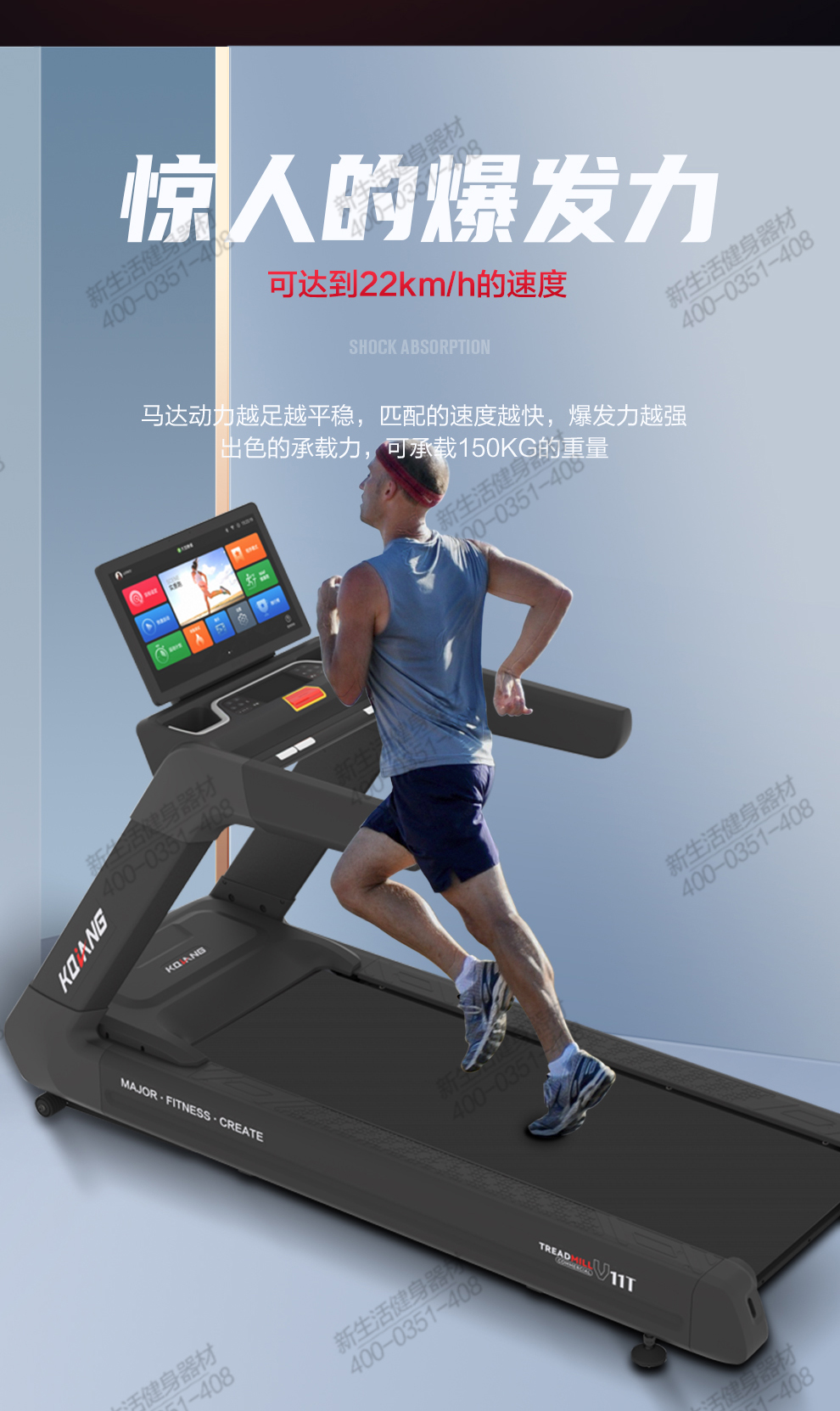 康强 V11T商用跑步机大型加宽智能彩屏高端电动健身房跑步机