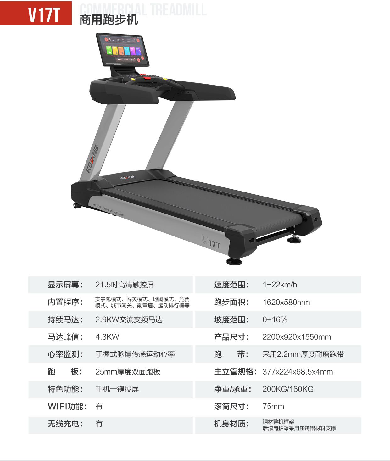 康强商用跑步机V17T健身房智能彩屏健身器材跑步机