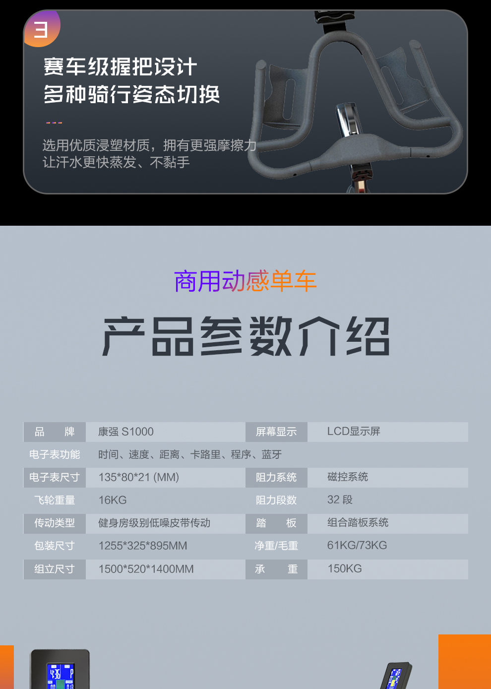 康强商用动感单车S1000家用商用级别健身车健身房专用健身器材